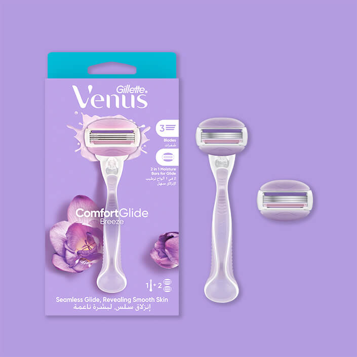 Améliorez votre routine de rasage en une journée spa. Avec ses barres de gel parfumées à la freesia, ce rasoir Gillette Venus ComfortGlide mousse et rase en un seul passage. Pas besoin de gel de rasage ; il est intégré et la lubrification SkinCushion aide à protéger votre peau des irritations dues au rasage. Et le rasoir à 3 lames offre jusqu'à 30 jours de peau douce. Gardez le manche et changez les lames : notre manche ergonomique antidérapant vous offre une finition parfaite et est également compatible avec toutes les cartouches de lames Gillette Venus pour un rasage à votre manière. Optez pour un rasage conçu pour votre peau. Optez pour Gillette Venus ComfortGlide.